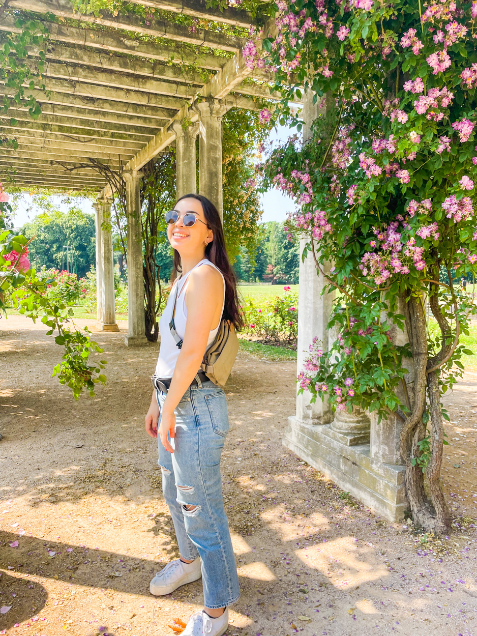 We walked down the main paved path and discovered that as Google Maps showed, the park was indeed massive. We came across a rose garden and took some photos. Then, we kept walking and saw there was a zoo, so we went inside and saw some birds and monkeys. We got back on the paved path and reached a botanical garden, but there weren’t that many flowers. We were getting hungry, so we left the park and took the metro to an area of town we walked through the day before.