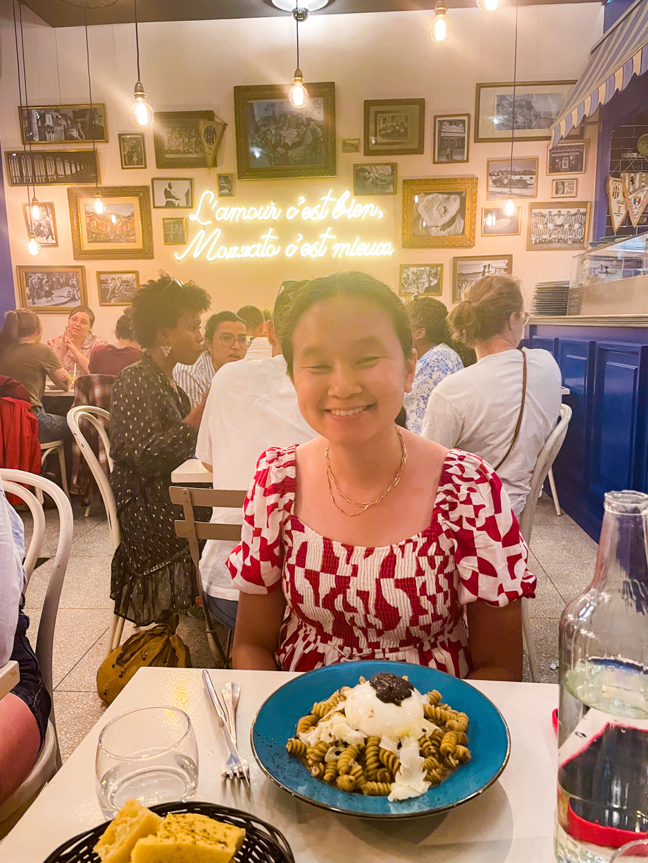 There were two restaurants that caught my eye that I had stalked on Instagram. Mozzato had a long line outside and Bellie looked a little less busy, so we went to Bellie. The menu changes every couple of weeks, and everything came in small shareable plates and looked delicious. We got ceviche, baba ganoush, fried fish, and pork with bokchoy. Everything was so flavorful and artfully presented. I loved their dishware! This was one of my favorite meals of our entire Europe trip.